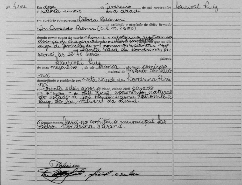 Óbito de Lourival Ruiz |